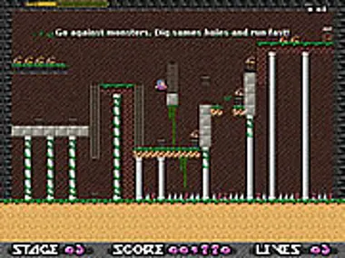 Lode-Runner remake with bumpers and bombs. Pick-up all the gold bag before you get caught by level guardians. Use bombs to stop the enemies and to pass through bricks. Take a bumper to fly in the air and avoid to fall on the killing spikes. Good luck Android.