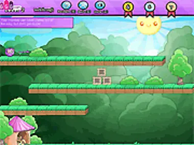 Fling your purple character as few times as possible to reach the exit tent. Beware of boxes!