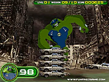 Show Humungousaur's brute strength by breaking cars.
