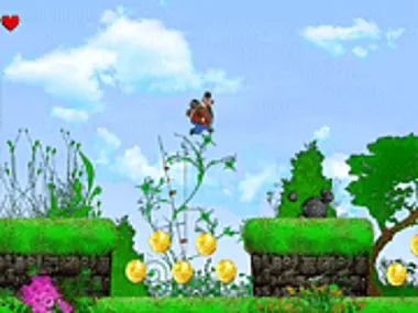 Het belangrijkste wapen van je personage is om op de hoofden van vijanden te springen en kettingreacties te ontketenen.