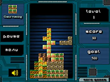 Classic Tetris game on a computer circuit board. Use the arrow keys to control the bricks.