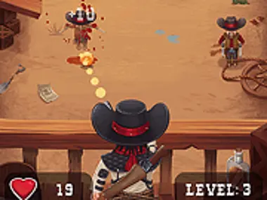 Speel als een cowboy die zijn favoriete saloon moet beschermen tegen de aanstormende golven vijanden. Je moet schieten op de munten die de vijanden laten vallen. Maar wees voorzichtig, want elk schot dat je neemt om munten te verzamelen, is één schot minder dat je kunt nemen om een naderende vijand te verslaan, dus elk moment heb je allerlei kleine beslissingen die je snel moet overwegen. Er kunnen verschillende soorten vijanden tegelijkertijd op je afkomen, dus je moet snel prioriteiten stellen en zo efficiënt mogelijk zijn met je bewegingen, want zelfs het veranderen van je doel kost behoorlijk wat tijd, en elke seconde telt. Veel plezier met het spelen van het Cowboy Saloon Defence-spel hier op Y8.com!