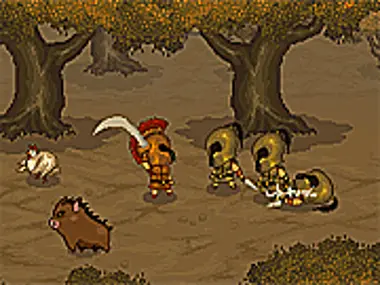 Het spel bevat pixelachtige graphics en retro geluidseffecten die een nostalgische sfeer creΓ«ren. Het spel heeft ook een humoristische toon, aangezien spelers verschillende voorwerpen als wapens kunnen gebruiken, zoals kippen, vissen of kookpotten. Het biedt tal van verwijzingen naar oude Griekse mythen zoals Koning Midas of Talos de bronzen reus.