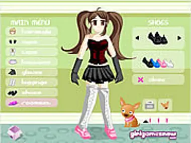 Use the several outfits to dress up this cute anime girl and give her her own special look. Pick out of shirts, sweaters, dresses, skirts, shoes, gloves, leggings and shoes to create endless of combinations!