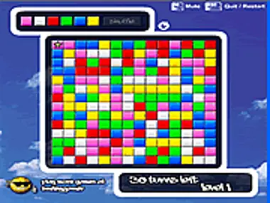 Fill the board with one color by swapping the tile colors in this challenging virus-like puzzle game! Play strategically and smart to save turns, and progress through as many levels as possible before you run out of turns!Game Controls: