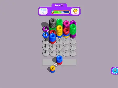 Hoop Stack: Ring Sort 3D is een levendige kleursorteerpuzzel. Verplaats hoepels tussen pinnen om bijpassende kleuren te groeperen, terwijl je omgaat met beperkte ruimte en de volgorde van zetten. Bouw nette stapels, activeer bevredigende opruimingen en ontgrendel moeilijkere lay-outs naarmate je vordert. Speel nu het spel Hoop Stack: Ring Sort 3D bij Y8.