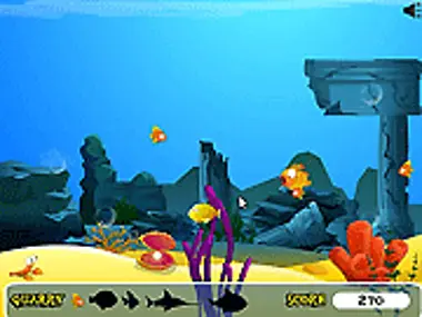 Zorg dat je waanzinnige aquariumgoudvis groter en groter wordt tot hij alle vissen opeet! Als je nog niet groot genoeg bent, pas dan op voor kogelvissen, zwaardvissen en dodelijke haaien.