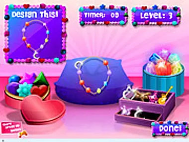 Sarah heeft zich ingeschreven voor een sieradenontwerpuitdaging! Help haar elk sieraad te maken voordat de tijd om is! Klik op de vallende bonusedelstenen voor extra punten!