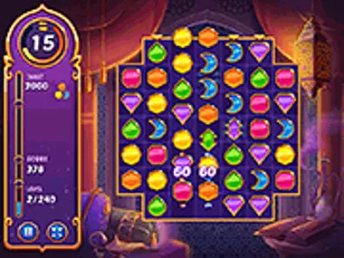 Open de boekrol van Duizend-en-één-nacht en laat je meevoeren naar het land van mysterie en magie. Combineer unieke Arabische juwelen, activeer power-ups en los match 3-puzzels op met strategie. Kun jij de missies voltooien?