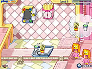 Your shop is now open for business. Serve your customers burgers, fries, drinks and more. Make sure the order is right so the leave happy.
