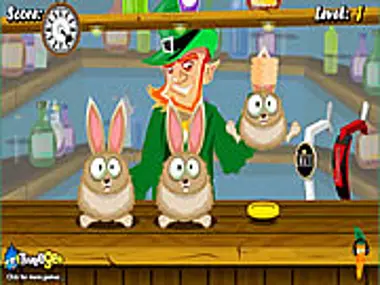 Watch carefully as the leprechaun rearranges the bunnies to hide the money. Try to track the right one with your eyes.