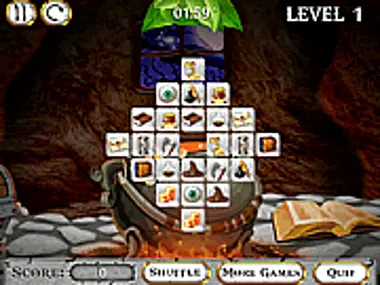 Game-Mahjong.com presenteert een nieuw, origineel type van het eeuwenoude mahjongspel dat verschillende favoriete logische spellen combineert. De vriendelijke tovenaar creëert de magie in de stam van een eeuwenoude eik in het donkere bos. Zoek naar alle benodigde magische elementen in de mysterieuze kamer tussen dikke toverboeken en een borrelende kuip met kokend drankje. Het is de taak om twee identieke elementen te verenigen. Om het magische element te verplaatsen, klik erop en kies de richting van de beweging. Het spel heeft uitstekende, rijke, kleurrijke graphics en verslavende gameplay.