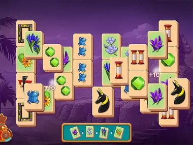 Welkom in de mysterieuze wereld van het Oude Egypte! Vind bijpassende tegels, los mahjongniveaus op en verzamel artefacten om de geheimen van de Giza-vallei, de Oude stad, de Woestijn en de Nijl te ontdekken. Ontdek hoe de Grote Piramide van Gizeh werd gebouwd, hoe Egyptenaren hiërogliefen leerden lezen, waarom alleen de farao een kat mocht bezitten in het Oude Egypte en nog veel meer. De eenvoudige en boeiende gameplay van mahjong solitaire is de beste manier om te ontspannen. Je zult enorme schatten, lastige sloten, nieuwe bonustegels en meer vinden.