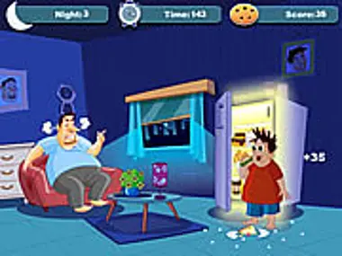 The tummy wants what the tummy wants...Click and hold to scarf down snacks and get your fill before time's up. Just don't get caught by dad!