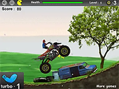 Ride your monster quad over the hilly terrain as you grab stars and crush vehicles. Don't tip over!
