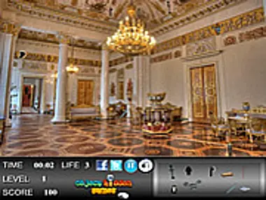 Find all the hidden objects in this museum hall room.