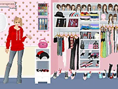 Dress up the girl with the clothes on her big wardrobe!
