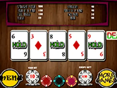 Het doel van dit Flash Poker is om te beginnen met vijf kaarten en te proberen een winnende combinatie te krijgen, zoals bij het reguliere tafelspel Five Card Draw Poker. Als je wint, probeer het dan te verdubbelen door op de rode of zwarte knop te klikken. Veel succes!