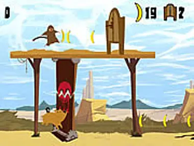 Grab bananas and jump over gaps as you throw piles of crap to trigger gate openings.