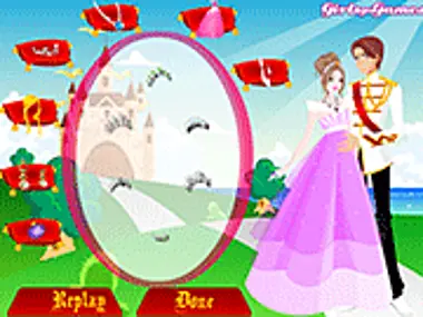 Klik op de kussens om de verschillende categorieën kleding en sieraden te zien. Klik op de opties om de prinses aan te kleden. Het is het moment waar ze op heeft gewacht, en alles moet perfect zijn.