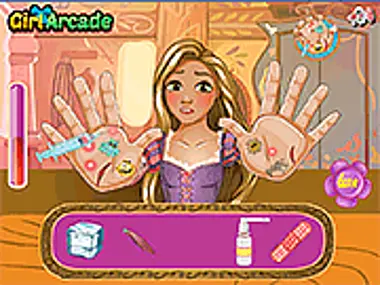 Een mooie prinses zijn is niet gemakkelijk en er kunnen je slechte dingen overkomen. Dus onze lieve prinses Rapunzel heeft ernstige handblessures opgelopen. Ze heeft snel een dokter nodig om haar wonden te behandelen. Wees de vriend en dokter die ze nodig heeft.
