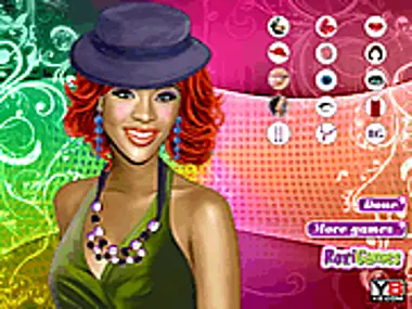 Rihanna houdt ervan zich uit te drukken via mode, en daarom heeft ze zo'n originele stijl. Ze kiest ook zorgvuldig haar make-up en kapsel en ze houdt absoluut van tatoeages. Speel dit leuke make-overspel en probeer haar look te veranderen zoals jij wilt.