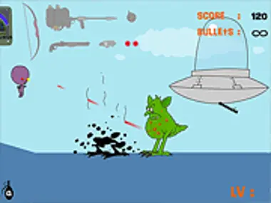 Je bent een alien op de vlucht! Je enige hoop op overleving is om je een weg te banen naar vrijheid en iedereen neer te schieten die je in de weg staat! Hoe ver kun je komen voordat je overweldigd wordt door de bizarre wezens van de planeet?