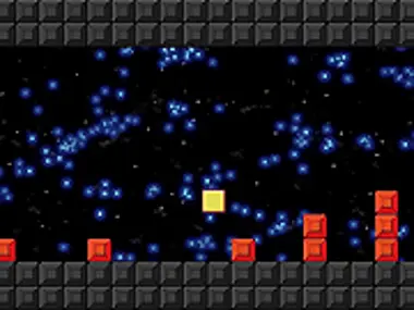 Make the yellow box jump over obstacles to reach the end while continuously moving.