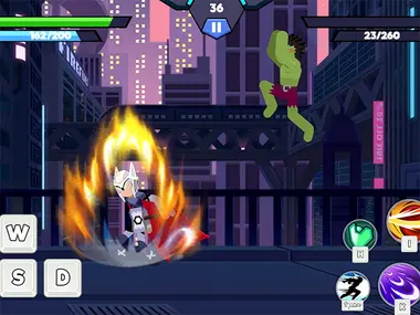 Stick Hero Battle is een actievolle vechtgame op Y8.com waar stickman helden het tegen elkaar opnemen in snelle en intense gevechten. Ga de strijd aan in de Challenge Mode, met 3 unieke maps en in totaal 18 levels, die elk steeds moeilijker worden en eindigen met een episch baasgevecht in het laatste level. Voor non-stop actie spring je in de Battle Mode en vecht je online tegen willekeurige spelers om je vaardigheden te testen in real-time gevechten. Win gevechten om beloningen te verdienen en gebruik je zuurverdiende geld om verschillende superheldenrollen te ontgrendelen en aan te schaffen, elk met een frisse look en stijl voor het gevecht.