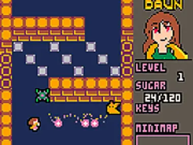 Sugar High Daun is een kleine hybride van top-down actie-avontuur à la Zelda en Breakout. Daun kan tot vijf suikerballen tegelijk afvuren die zullen afketsen bij inslag op een muur of vernietigbare blokken, of een vijand beschadigen en verdwijnen. Maar dit kost haar suiker als ze probeert meer ballen af te vuren dan haar huidige niveau: bijv. op niveau 2 kan ze er twee schieten zonder extra kosten, maar het derde schot zal haar extra suiker kosten. Haar bloedsuikerspiegel daalt na verloop van tijd, dus de speler zal actief op zoek moeten gaan naar de handlangers van de demon om overeind te blijven. Verslagen vijanden zullen verschillende dessertitems achterlaten en dit zal haar suiker aanvullen. Daun krijgt geen ervaring van het verslaan van vijanden. Er zijn vier macaron-items in de kerker die haar niveau met 1 zullen verhogen. Veel plezier met het spelen van dit spel hier op Y8.com!