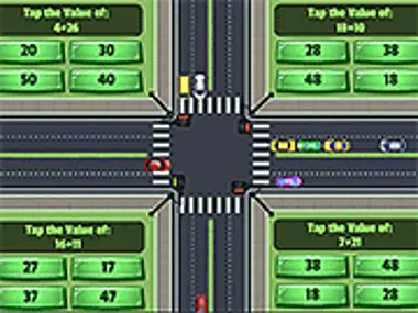 Dit is een verkeersregelingsspel waarin je de verkeersstroom regelt door het verkeer in een rijstrook te starten door op een optie te klikken die het juiste antwoord op de vraag toont. Er zijn vier sets rekenopgaven; elk is gekoppeld aan een verkeerslichtsignaal. Als je op de juiste optie tikt voor de gestelde vraag, zal het zijn signaal groen maken en zullen alle andere signalen rood zijn. In elk level moet je het verkeer binnen een beperkte tijd regelen. Probeer zoveel mogelijk vragen op te lossen als je kunt, terwijl je verkeersopstoppingen vermijdt. Als je op de verkeerde optie tikt, verlies je het level. Het spel wordt geleidelijk moeilijker naarmate je verder komt in de levels.