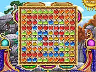 This is a match three game where you can't change positions of the objects, but need to look for groups of 3 or more adjacent equal objects and click on them. Once you do it, the objects disappear and the free space is filled by other objects that fall from above. If there were any tiles under the disappearing gems, the tiles will be broken. When all tiles on the screen are broken a key and a key hole appear. You need to eliminate all gems between the key and the hole to make it fall there.