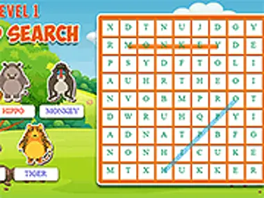 Dieren vragen je hun namen te vinden op het speelbord aan de rechterkant. De namen zijn verspreid tussen de letters die in een chaotische volgorde staan, maar als je goed kijkt, zul je verborgen woorden vinden die de beesten van je verwachten. Wanneer het woord is gevonden, veranderen de letters onder het bijbehorende dier van kleur. Het spel heeft vijf niveaus en je kunt het niet alleen op het land, maar ook onder water spelen.