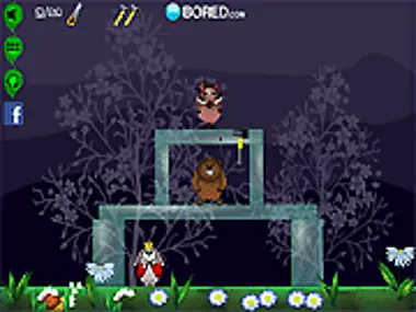 Use saws to cut threw trees or hammers to break glass & send animals tumbling. Save the bunny.