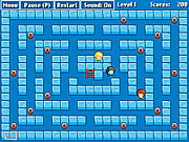 Try to collect all donuts and rescue all people. Beware of zombies! Zombies can't walk upstairs. You can move orange blocks.